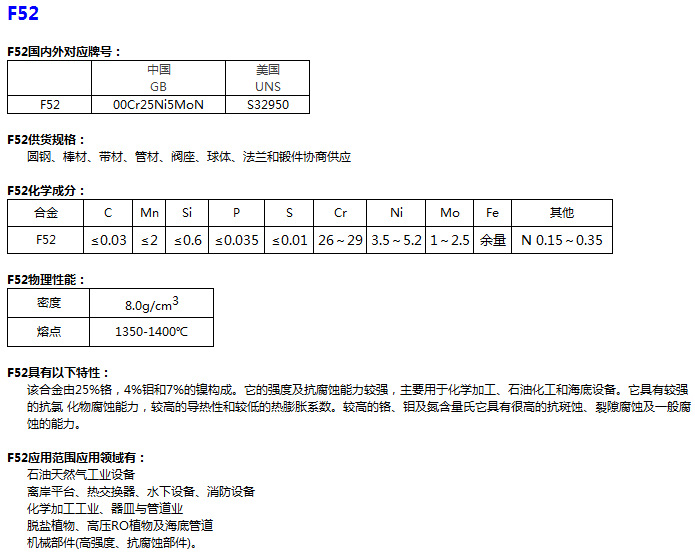 f52不锈钢棒/板/管 - 特殊不锈钢